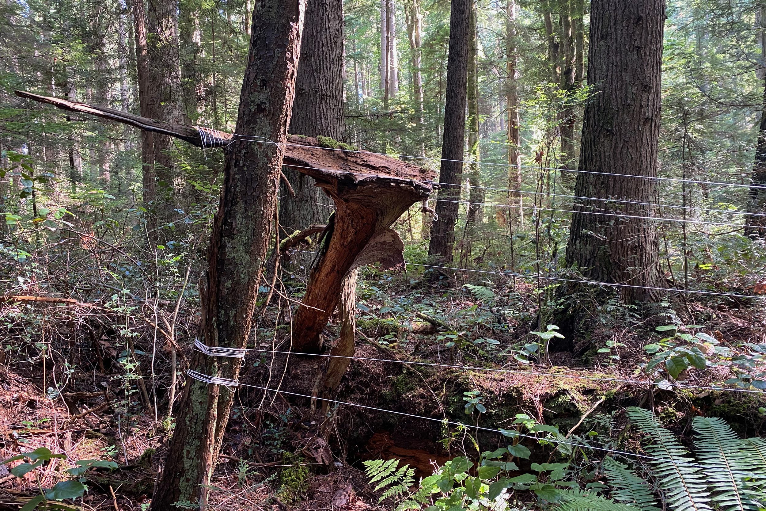 Media: Forest, masonry string, zip ties, survey flags